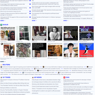 Hay muchas páginas que puedes encontrar fuentes infinitas de información, por ejemplo (contenido no patrocinado) lo que vienen siendo las noticias del día a día: Upstract, o relacionado con temas de negocios: BizToc. Si lo que quieres es tener visiones similares pero agrupada por categoría prueba NewsNow.